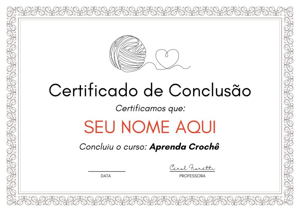 Nosso curso conta com um lindo certificado de conclusão para as alunas.